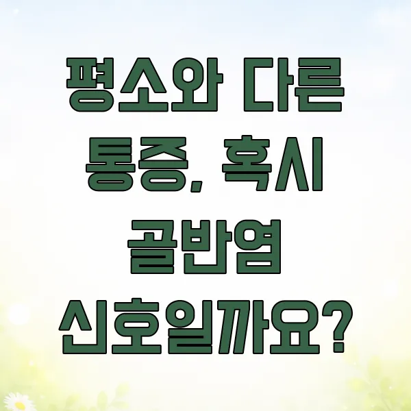 특히 묵직하게 느껴지거나 콕콕 쑤시는 듯한 통증이 몇 주 이상 계속된다면, 이는 염증으로 인한 신호일 수 있으니 꼭 점검해 보시는 것이 좋아요.
