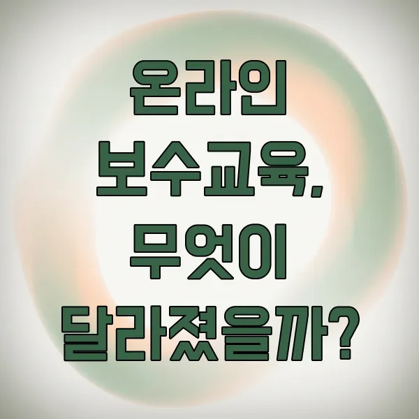 Q. 온라인 교육이 오프라인 교육보다 덜 중요하거나 가치가 낮은 건가요? A. 아닙니다. 온라인 교육 역시 법적으로 인정되는 공식적인 보수교육이며, 교육 내용이나 이수 효과 면에서 오프라인 교육과 동일합니다.